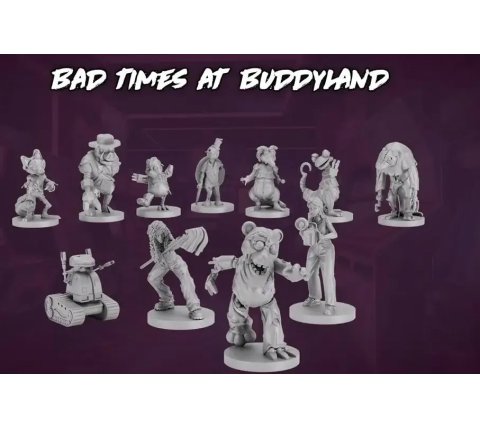 The set replaces the animatronic tokens in Bad Times at Buddyland with detailed miniatures. They seamlessly integrate with the existing scenario and add clarity, threat, and atmosphere to the game board.