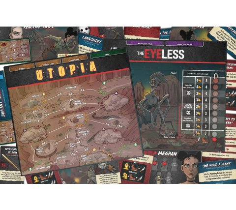 The Utopia location is as desolate as it is unforgiving. The desert village is plagued by Sand Snakes that unexpectedly emerge from the ground each turn, unleashing attacks that you can't stop or neutralize. Furthermore, parts of the playing field can collapse due to sinkholes, permanently obliterating spaces and killing victims instantly. Even movement is dangerous, and safe routes can suddenly disappear.