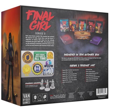 Final Girl: Ultimate Box - Series 3, you get the complete third series of Final Girl in one go. This Ultimate Box comes pre-filled and includes everything from the five terrifying feature films to all the miniatures, add-ons, and promos. No more loose boxes, no more missing pieces—this is the complete experience.