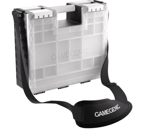 The Game Castle is a handy, double-sided case that lets you safely store and transport all your cards and accessories. Sturdy, easy-to-open and close clips keep both sides securely closed during transport. With the sturdy handle or adjustable shoulder strap, you can easily travel worry-free!