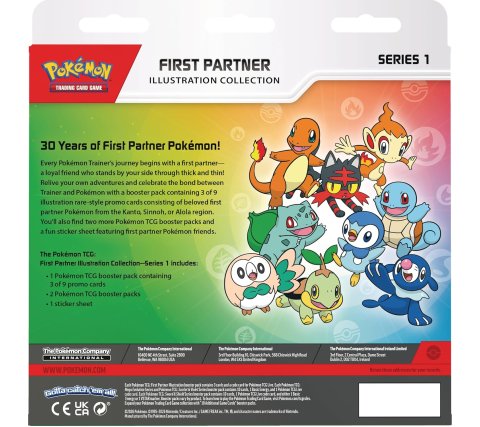 Every Pokémon Trainer begins their adventure with a first partner—a loyal friend who will always be by their side. With the Pokémon TCG: First Partner Illustration Collection, you celebrate that special bond between Trainer and Pokémon with a collection of beautiful cards and extra surprises.