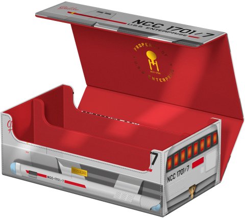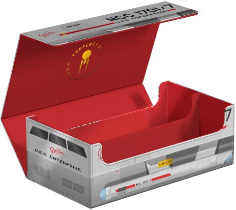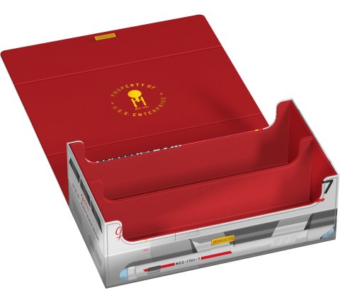 This box holds eight Squaroe deck boxes or Ultimate Guard Boulders. Besides deck boxes, you can also store 900 double-sleeved or 1000 single-sleeved cards in Ultimate Guard sleeves, or 350 cards in toploaders.