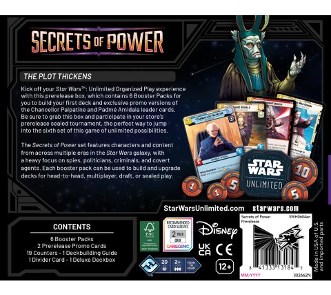 Create your own Star Wars: Unlimited deck!Pretend you're at the Star Wars Unlimited prerelease with the Secrets of Power prerelease box. Star Wars Unlimited boosters are designed to be ideal for limited-time play, such as booster draft and sealed decks. The challenge is to build your own deck from six booster packs. Fortunately, each booster contains at least one leader and one base, and thanks to Star Wars Unlimited's special deckbuilding rules, the possibilities are endless. A prerelease box also includes two unique promo cards. Are you ready for your Star Wars Unlimited adventure?