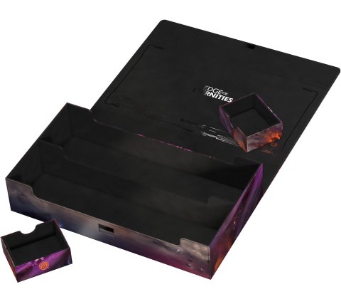 This Magic: the Gathering Omnihive 1000+ is a beautiful storage box with impressive Magic: the Gathering artwork. The Omnihive 1000+ is made of sturdy, scratch- and impact-resistant Xenoskin material in full-color print. The storage box includes two magnetic trays for storing various accessories. Thanks to the magnets, the trays are easy to remove from the box and put back in.