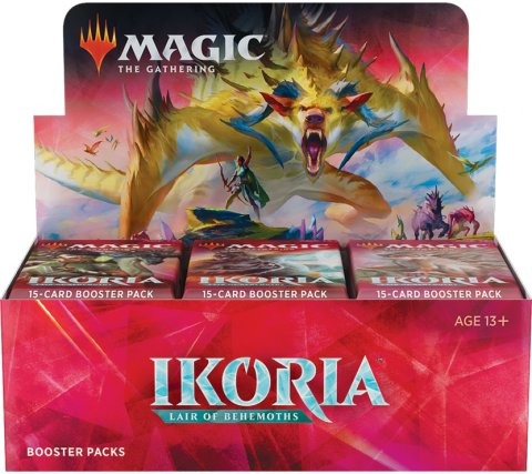 Een boosterbox Ikoria: Lair of Behemoths bevat 36 boosters. Elke booster van Ikoria: Lair of Behemoths bevat 16 Magic: the Gathering kaarten waarvan een rare, drie uncommons, tien commons, een basic land en een token. In ongeveer één op de acht boosters vind je geen rare, maar een mythic rare! Bovendien maak je kans om een kaart met het speciale showcase frame of een borderless planeswalker in een booster te vinden!