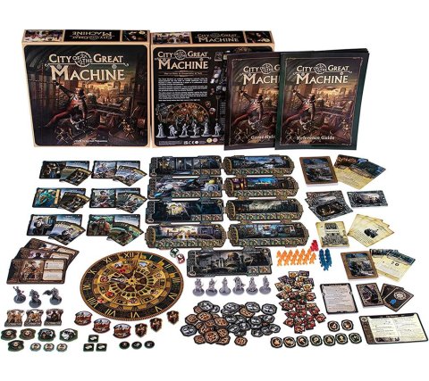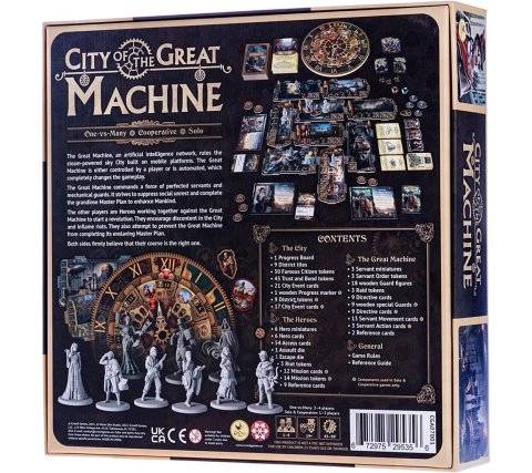 City of the Great Machine, een asymmetrisch strategisch bordspel, kiezen spelers een kant van de strijd: één speler bestuurt het AI-regime met mechanische wachters, dienaren en een Meesterplan dat elke ronde verder wordt uitgevoerd. De andere spelers vormen samen de helden, een team dat zich met verborgen bewegingen door de steeds veranderende luchtstad verplaatst.
