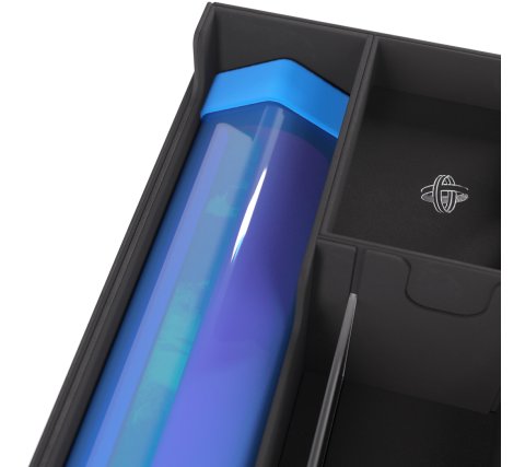 Deze opbergdoos is opgebouwd uit drie compartimenten. Een groot compartiment voor kaarten, Gamegenic deckboxen en tot twee playmats of een Gamegenic playmat tube.