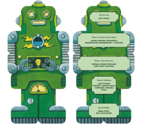 Elke robot bestaat uit vijf modulaire tegels die bepalen hoe de Robot zich tijdens het spel gedraagt. Zo wordt vastgelegd waar de robot zijn eerste stad bouwt, wanneer en hoe hij biedt op energiecentrales, welke grondstoffen hij koopt en hoe hij zijn netwerk uitbreidt. Daarnaast heeft elke robot een speciale vaardigheid die hem een strategisch voordeel geeft. Hierdoor ontstaat een voorspelbaar maar toch uitdagende tegenstander, waardoor je je strategie moet aanpassen aan hun gedrag.